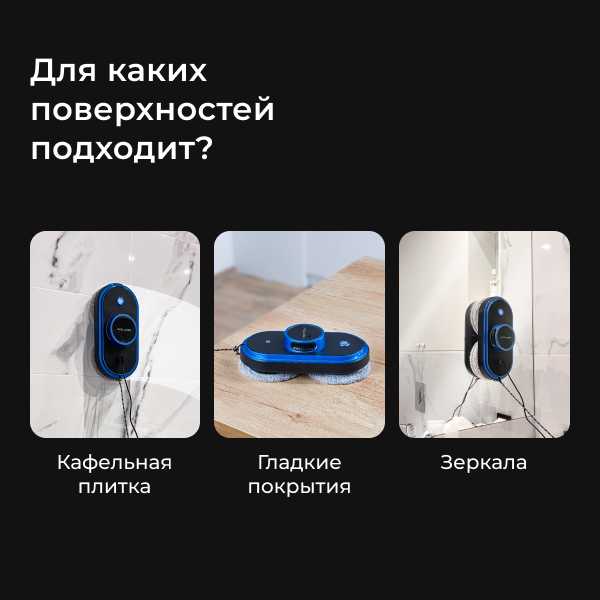 Идеален для мытья глухих створок на высоте (особенно выше 3 этажа), труднодоступных панорамных окон, межрамного пространства. Экономит до 70% времени при комплексной уборке: пока робот моет стекло, пользователь очищает рамы. Не заменяет ручную мойку при сильных загрязнениях или работе с неровными поверхностями.