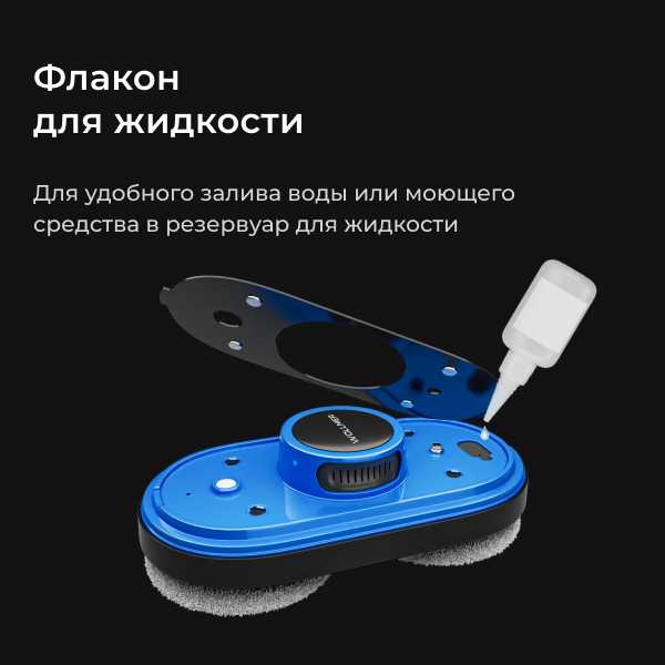 Ключевая особенность модели — длинный сетевой кабель, обеспечивающий непрерывную работу, но одновременно ограничивающий мобильность: робот функционирует исключительно от розетки, что осложняет мойку удаленных балконных секций. Автоматический распылитель жидкости работает циклично (каждые 10 секунд), однако многие пользователи сталкиваются с его капризностью — кристаллизация моющего средства в трубках, задержки первого запуска или полный отказ, требующий ручной прочистки шланга. Шумность на уровне 80 дБ (сравнима с феном) делает внутреннее использование дискомфортным, хотя при закрытых окнах это менее заметно. Комплектация включает 12 сменных микрофибровых тряпок, но их хватает лишь на 2-3 крупных окна при сильном загрязнении, вынуждая докупать расходники.