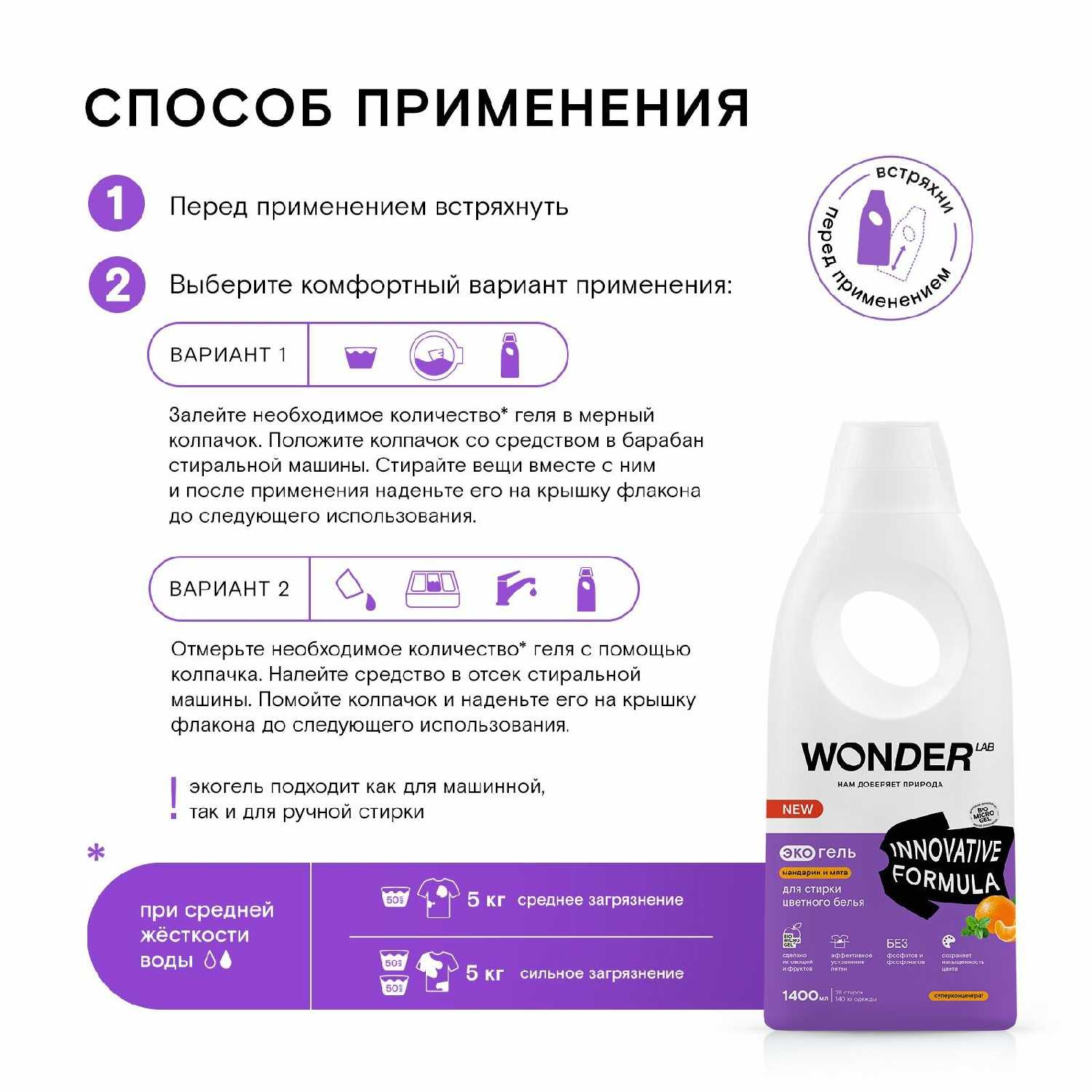 | Особенности : | антибактериальное, безопасно для детей, биоразлагаемое, гипоаллергенное, для активаторной стиральной машины, концентрат, не тестировалось на животных, подходит для чувствительной кожи, стирка при любой температуре |