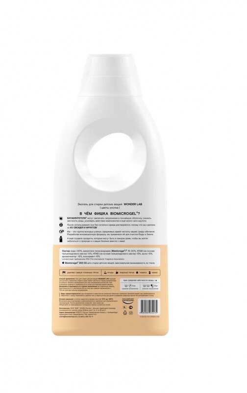 | Дополнительная информация : | бесфосфатный экогель для стирки детских вещей специально разработан для частого использования, аккуратно отстирывает разные загрязнения с разного типа тканей, подходит для ручной и машинной стирки и эффективен в холодной и жесткой воде, не “вымывает” цвета, ускоряет глажение обладает антистатическим эффектом, не вызывает кожных раздражений и аллергических реакций, хранить в плотно закрытой упаковке при t от +5 ºС до +25 ºС, возможна транспортировка и кратковременное хранение при отрицательных температурах, после разморозки сохраняет свои свойства, оберегайте от перегревания и попадания прямых солнечных лучей, стиральная машина |