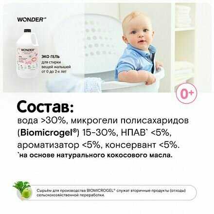 - + Экогель гипоаллергенный, подходит для стирки деток с рождения до 2 лет.