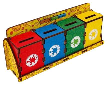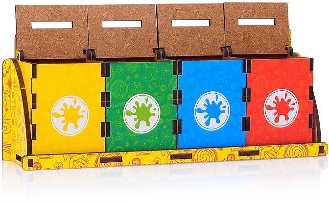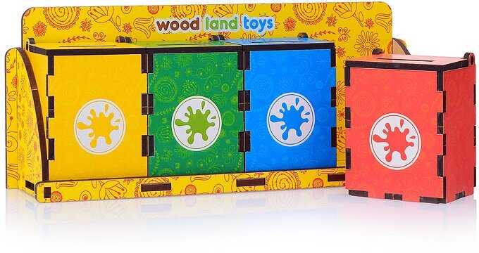 - подставка, - 4 ящика для сортировки, - 20 фигурок для сортировки. |