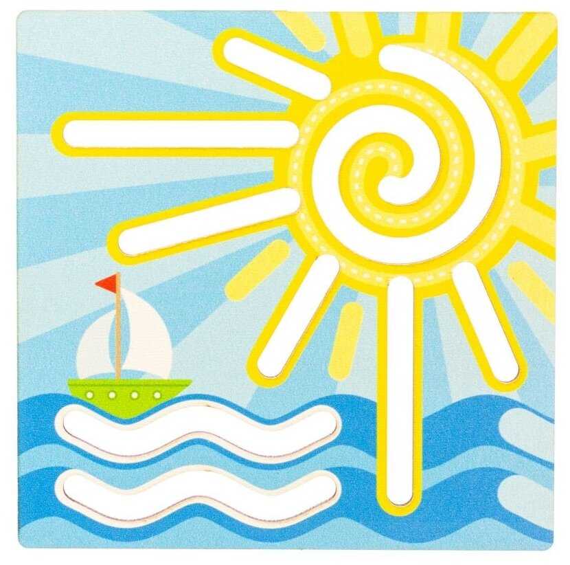 - + Очень хорошо обработанные досочки, трафареты развивают координацию ребенка