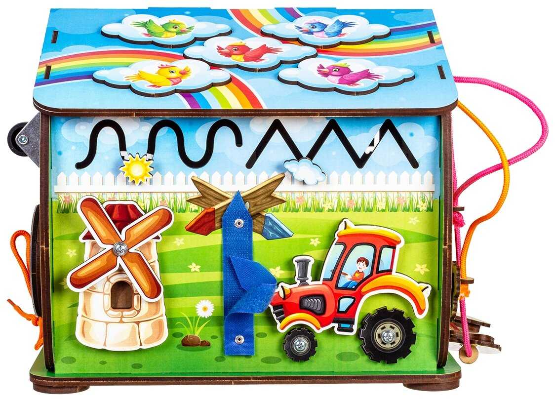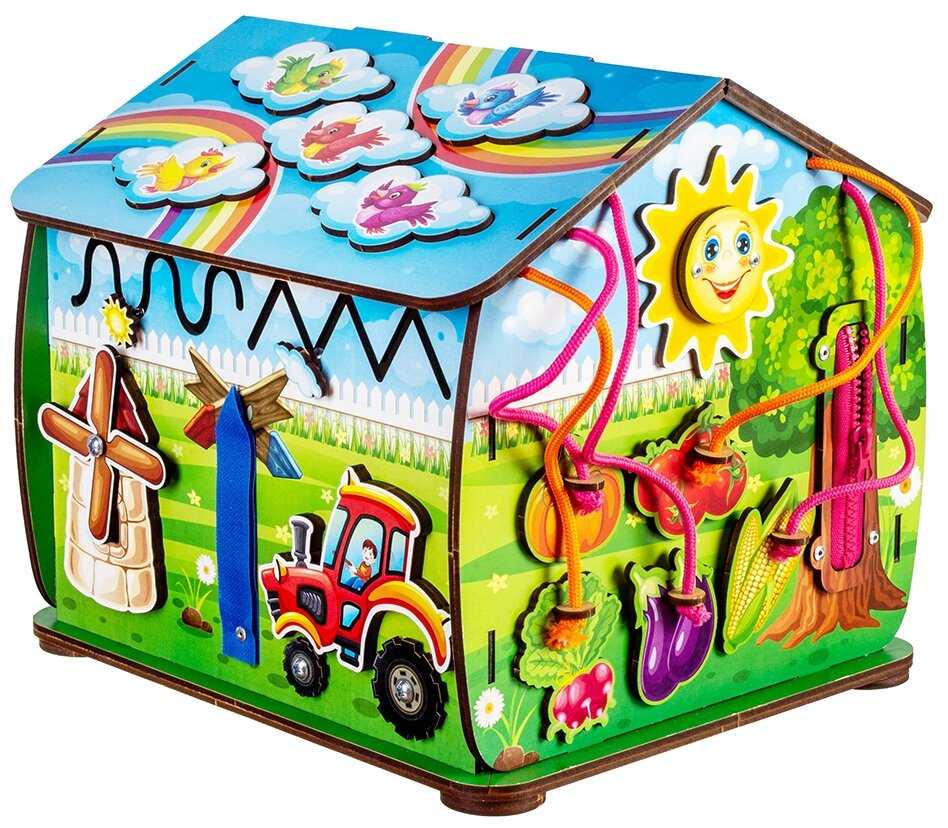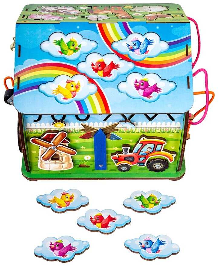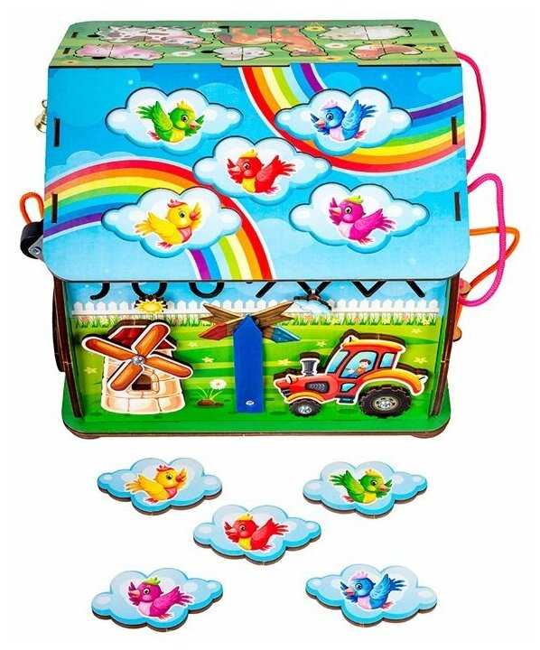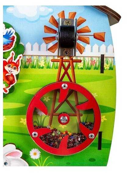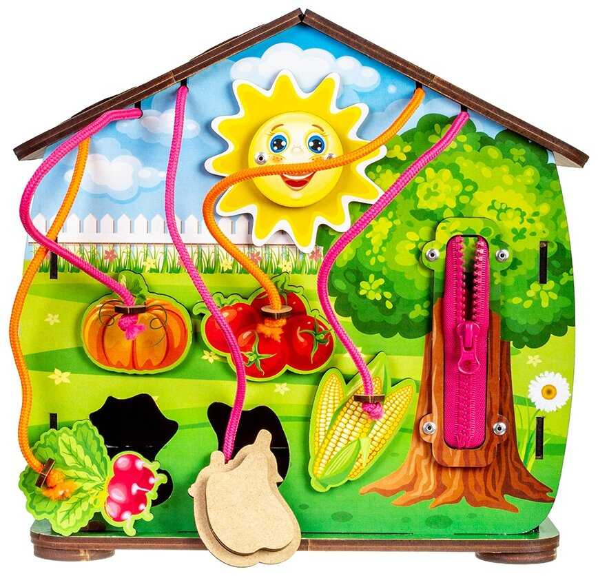 - - Идея хорошая, исполнение хромает. Мельница была отклеена, колокольчик не звенит , замочек туговат для детских пальчиков. Овощи, которые на веревочках в своих пазах не держатся, от слова «совсем».