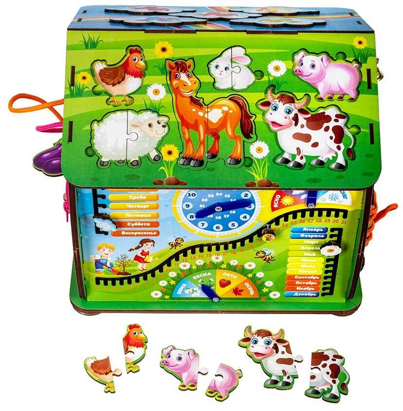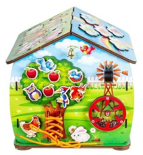Комплектация : | игровая основа - 1 шт., пазл - вкладыш - 12 шт., деталь на липах - 10 шт., вкладыш - 5 шт., фигура - вкладыш на шнурке - 5 шт., шестерёнка - 4 шт., лабиринт - 2 шт., часы-календарь, липучка, молния, шнуровка, колесо, колокольчик, колесо с бисером |