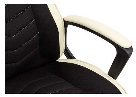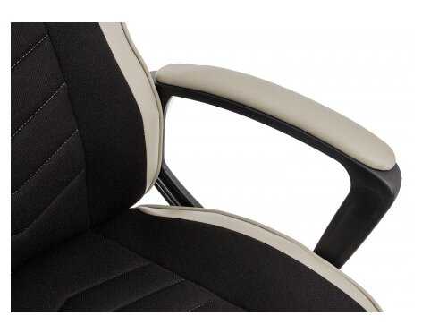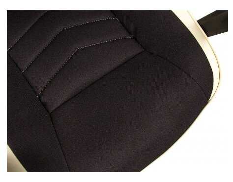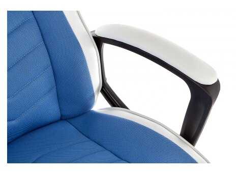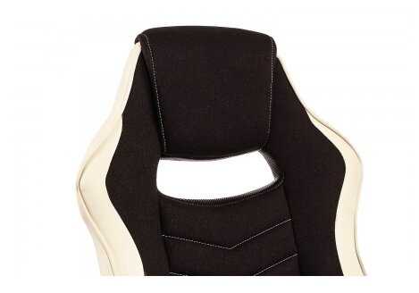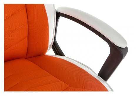 Материал сидушки и спинки ткань, не липнет и не потеешь.
