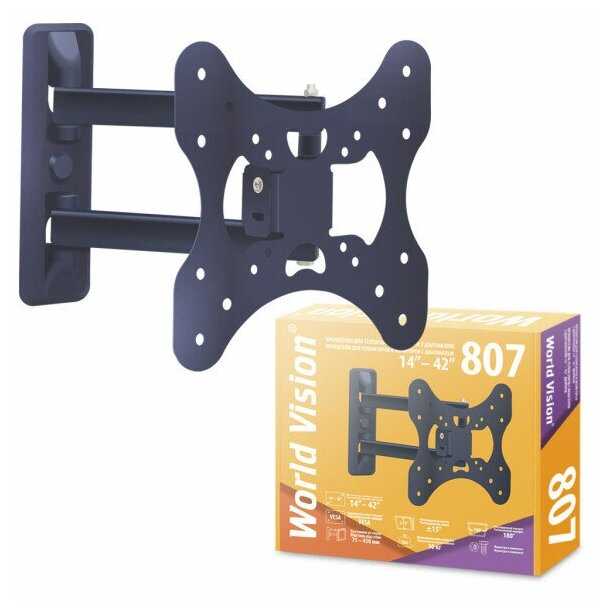 Отзывы о Кронштейн настенный для ТВ диагональ 14-42 наклонно-поворотный, вес до 30 кг World Vision 807