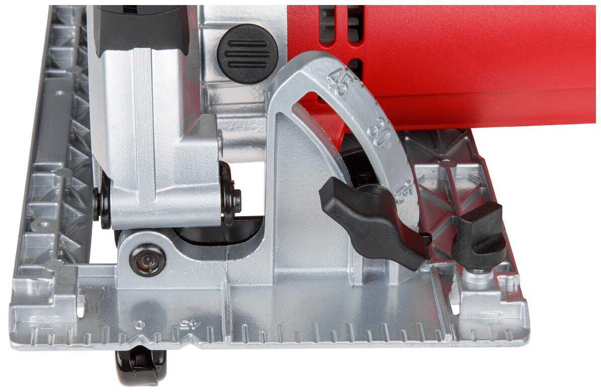 - + Максимальная глубина реза до 65 мм обеспечивает универсальность при работе с разными заготовками.