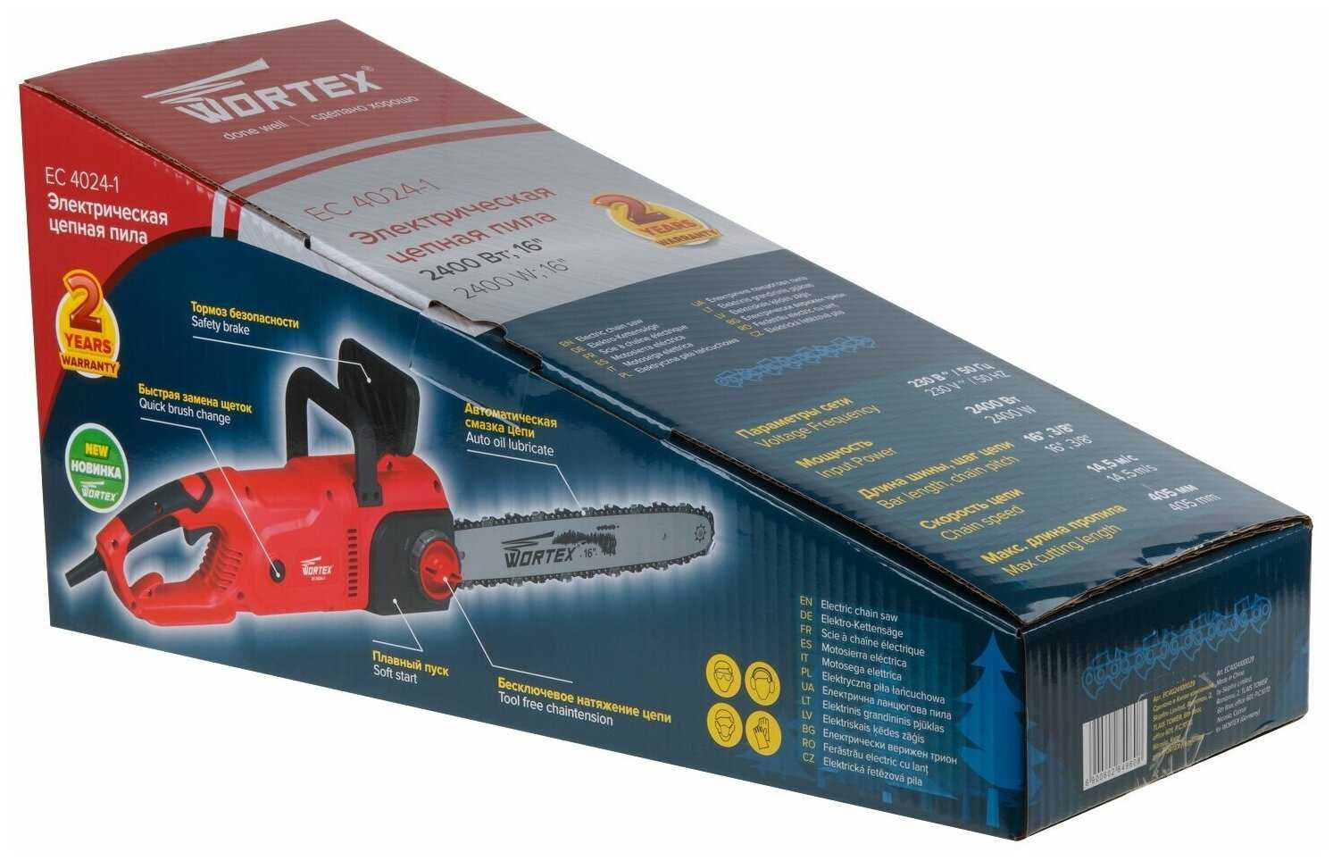 Комплект поставки : | Пила цепная электрическая WORTEX EC 4024-1 Шина Чехол для шины Цепь Паспорт |