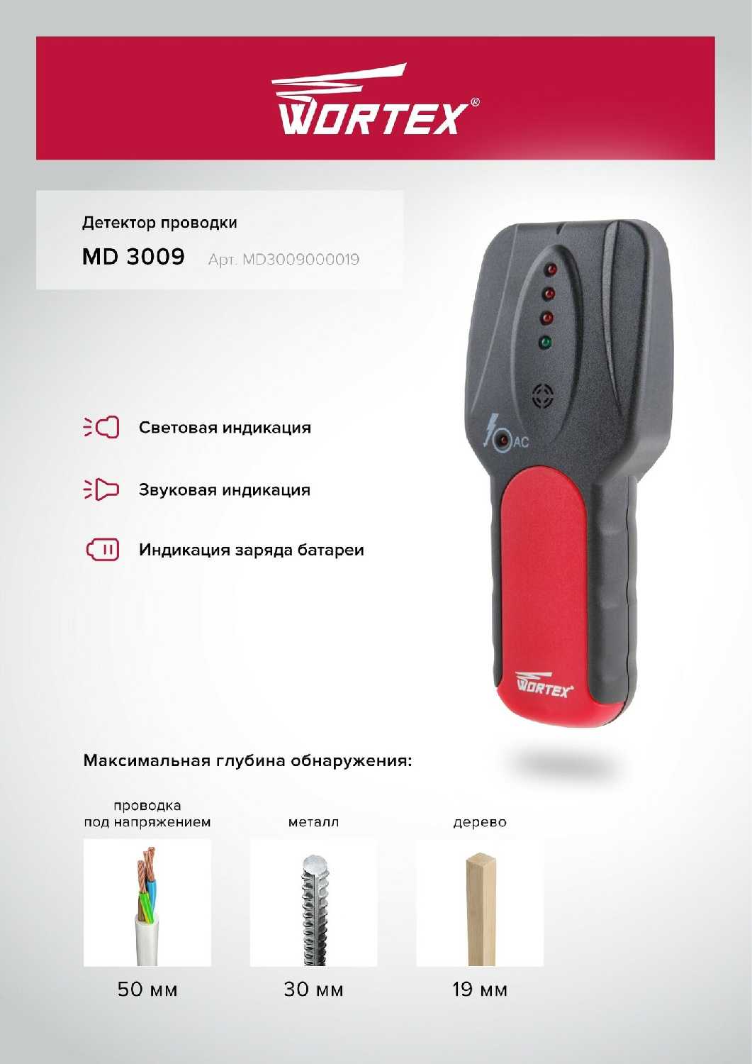 Отзывы о Детектор проводки WORTEX MD 3009 (MD3009000019)