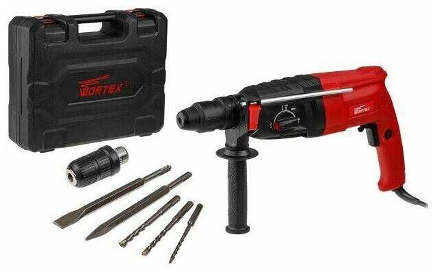 | Комплектация : | дополнительная рукоятка, быстрозажимной патрон, 3 сверла: 8х150, 10х150, 12х150 м, 2 зубила: пиковое 230 мм и плоское 20х230мм, ограничитель глубины сверления, кейс |