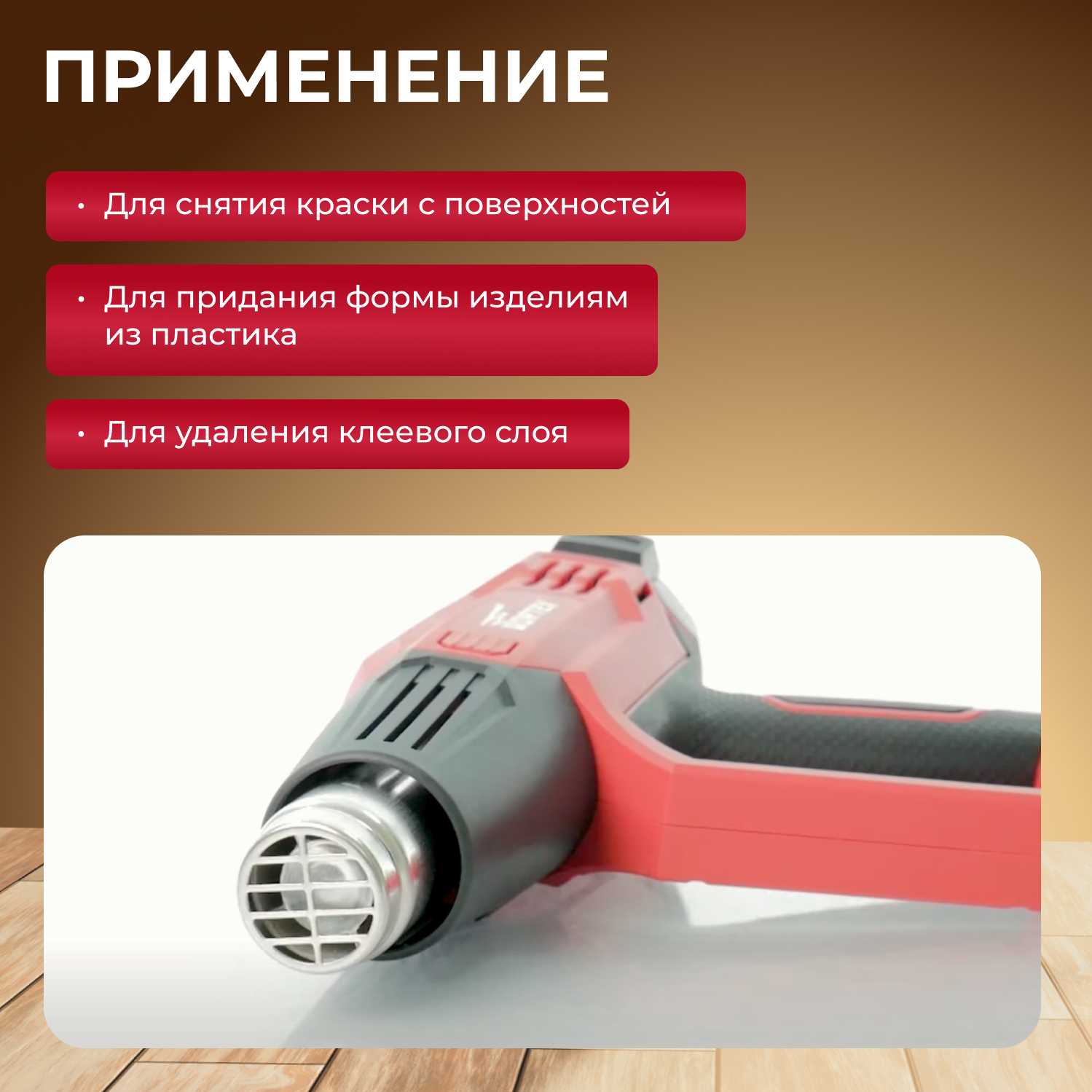 | Назначение : | изоляция проводов, подсушивание краски, разморозка труб, размягчение покрытий, сварка пластика, удаление краски |