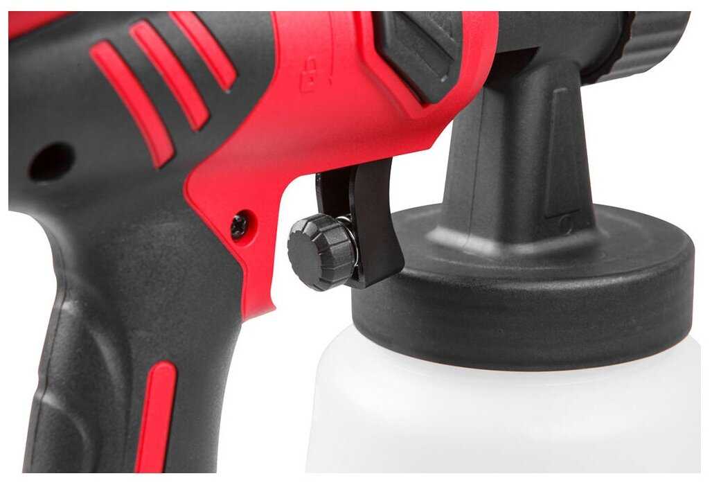 В активном использовании уже несколько месяцев. Для большого объема покраски – то, что надо. Рукоятка вполне удобная, приятно держать, ничего не скользит. Резервуар чуть меньше литра. Читала в отзывах, что нагревается. Отчасти соглашусь, но нагревается не критично спустя минут 20 непрерывной работы. Прибор не очень шумный и для меня легкий. Прокрашивает всё равномерно. После работы легко почистить. За такие деньги хороший вариант.