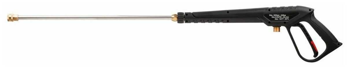 Долго подходил к покупке, смотрел много обзоров. На данную модель наткнулся, когда уже решил брать другую. Эта была дешевле на треть практически при тех же параметрах. Шланг 8 метров, грубо говоря хватит для любого легкового авто. Пистолет при этом легкий, руку не утомляет. По качеству помыва плюс-минус как на специализированных бесконтактных мойках.