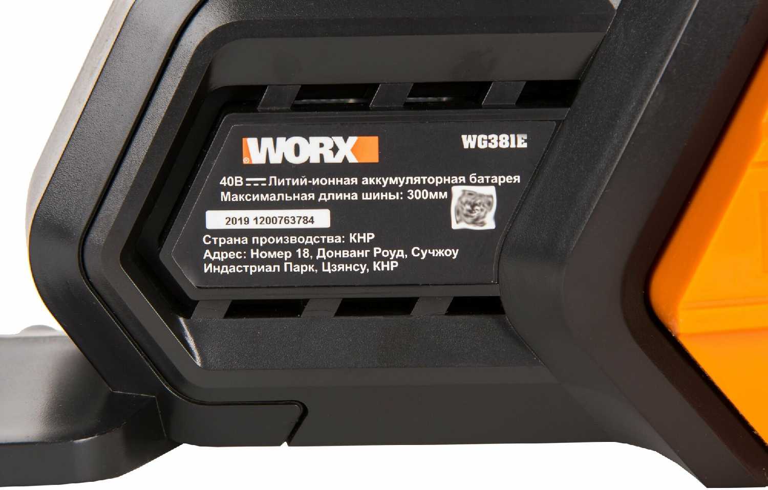| Комплект поставки : | Цепная пила аккумуляторная WORX WG381E.9 Цепь Шина Транспортировочная крышка Коробка |