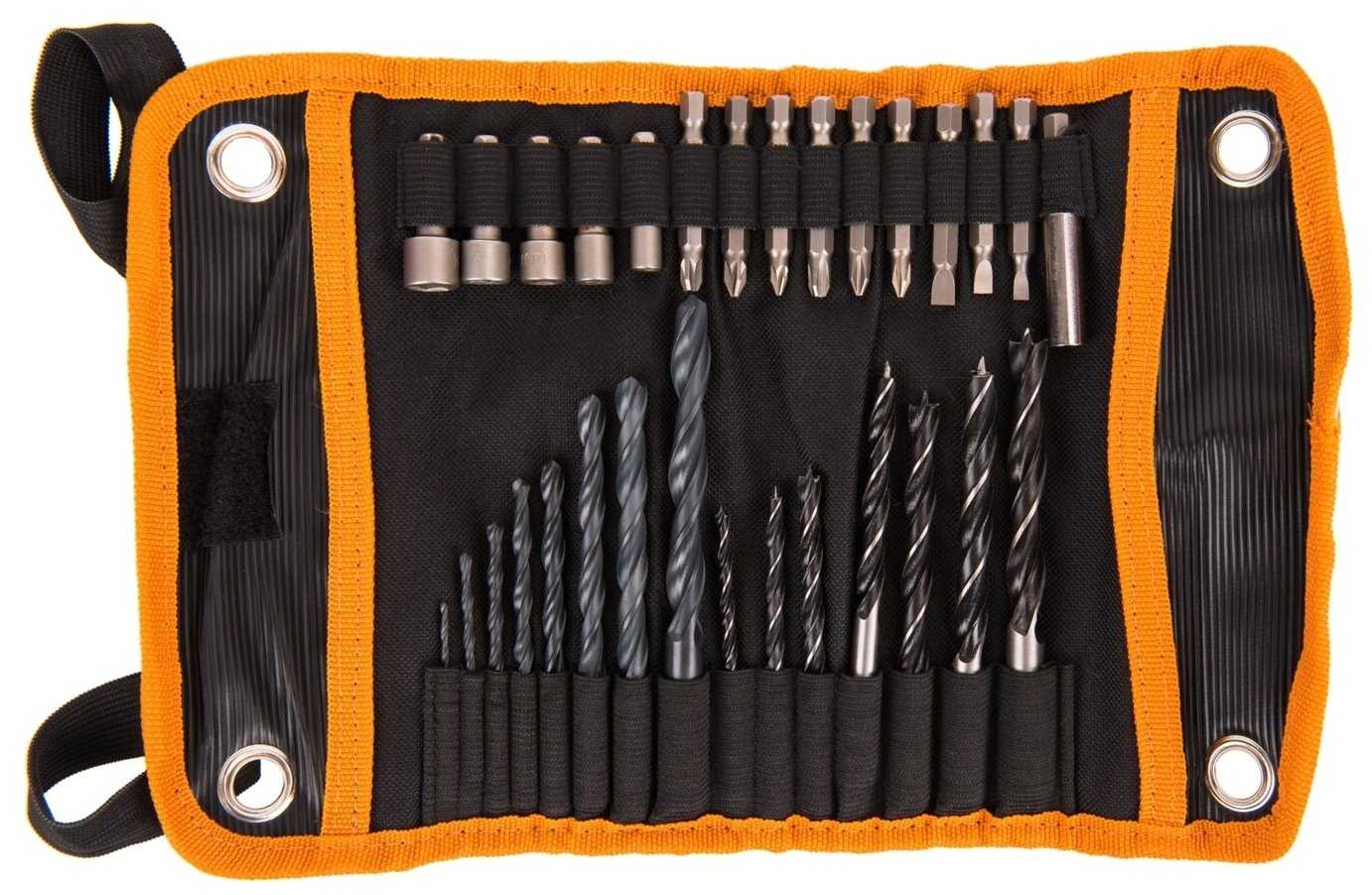 - + Удобный набор, где есть все необходимое. В комплекте 9 бит и 15 сверл. Мягкая, удобная сумка, которая в сложенном виде очень компактная-удобно брать с собой при необходимости.