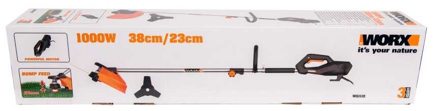 - подробная комплектация: триммер сетевой WORX WG111E