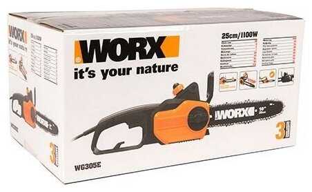 Комплект поставки : | "Комплектация: Цепная пила сетевая WORX WG305E, Чехол для лезвия, Коробка." |