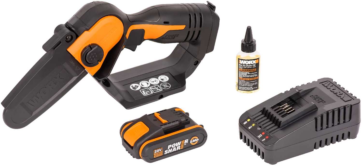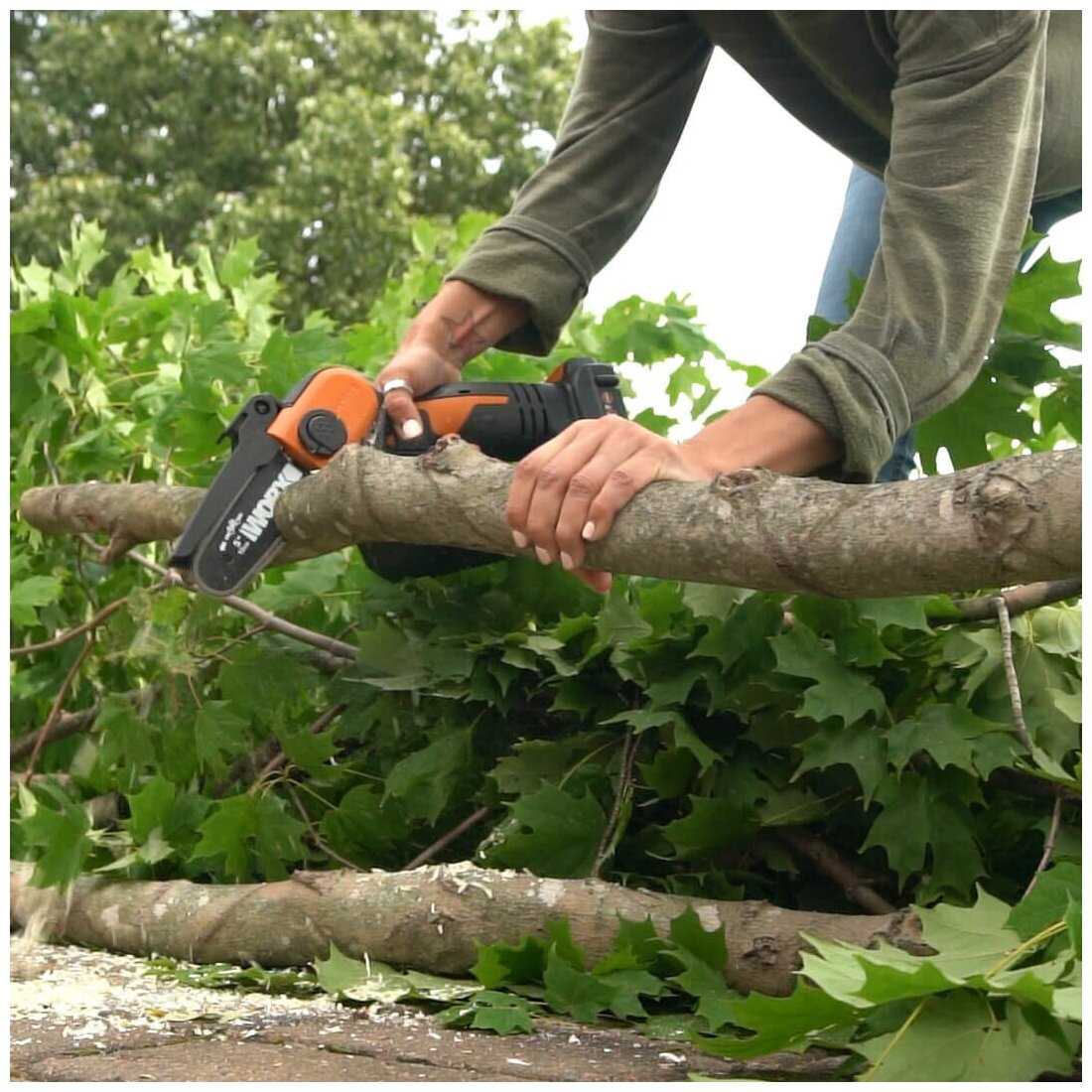 Пилит все, что попадает под шину. Компактная, легкая, производительная (как любая цепная пила)