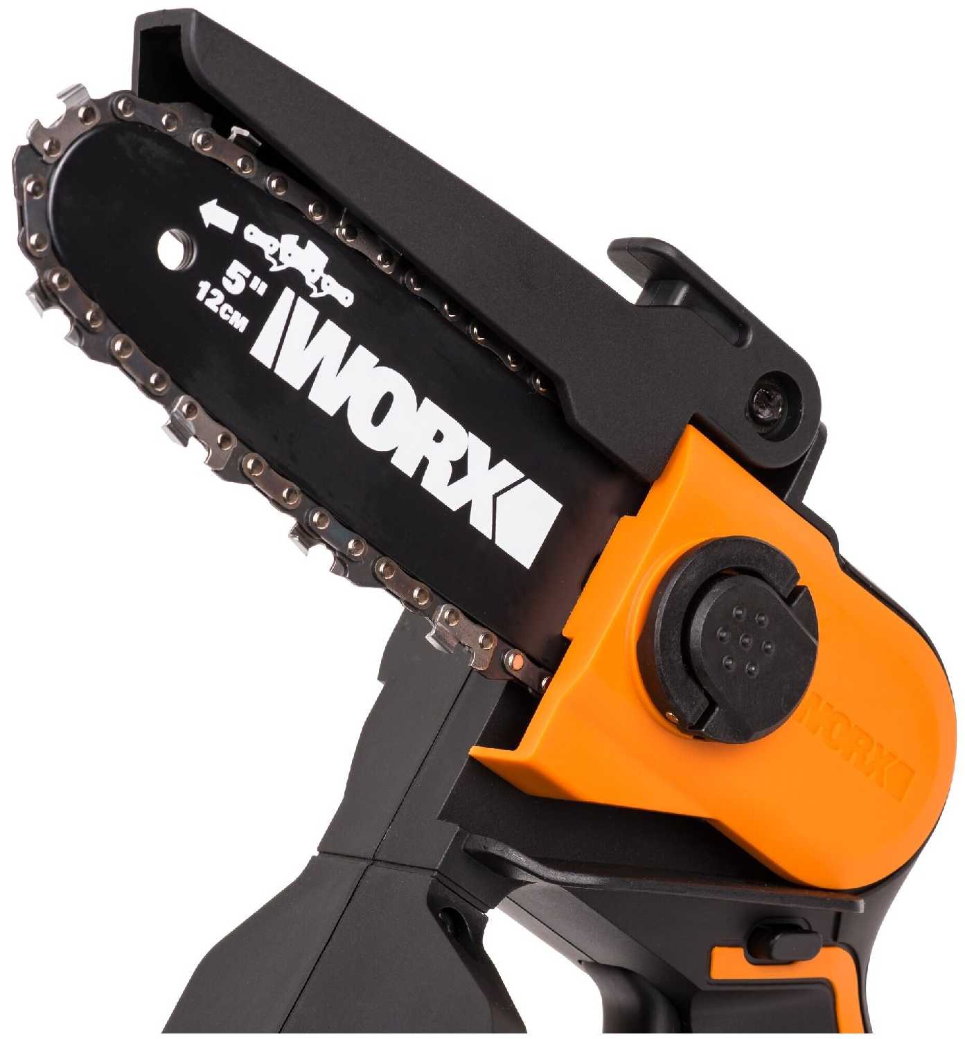 Особенности конструкции : | бесключевая замена оснастки, блокировка кнопки включения, мини-пила, регулировка натяжения цепи без инструмента, фиксация шпинделя |