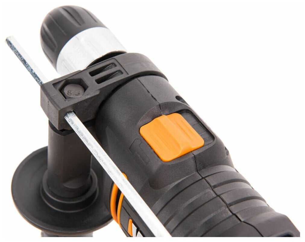 | Особенности конструкции : | антивибрационная система, блокировка кнопки включения, дополнительная рукоятка, лампа точечной подсветки, ограничитель глубины сверления |