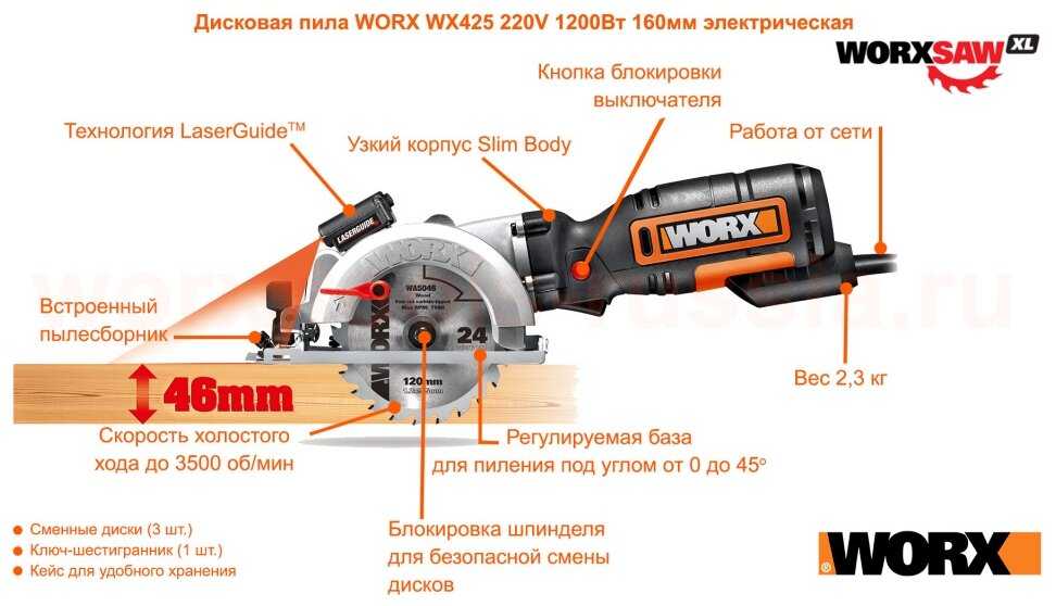 Дисковая пила Worx WX427 — 9 отзывов, плюсы и минусы