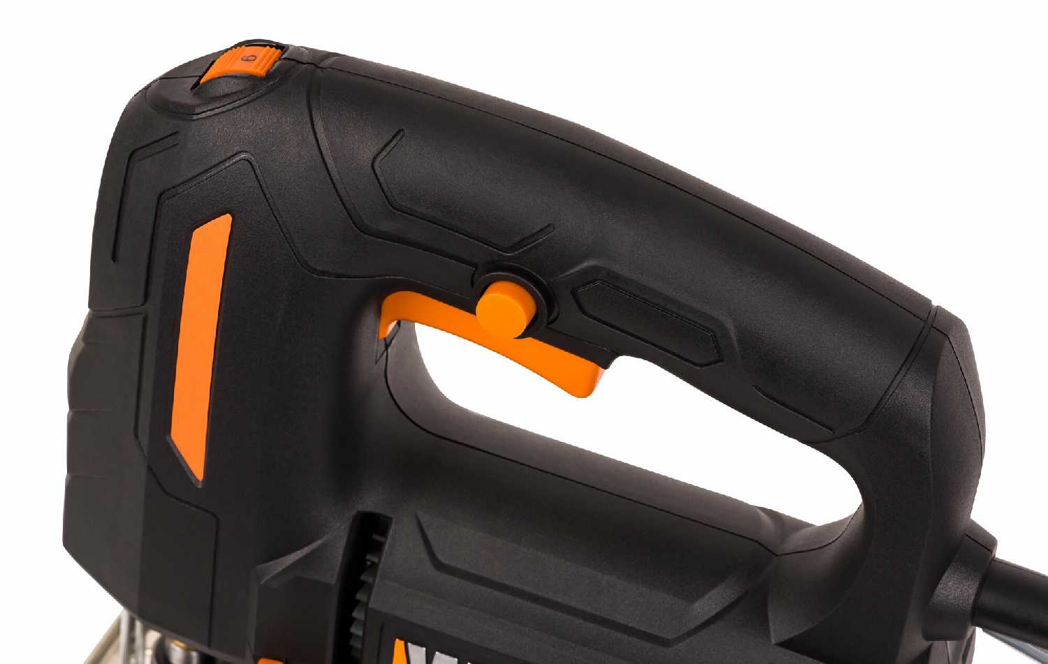 - + Не тяжёлый, имеется подсветка рабочей зоны и обдув. Адекватная цена с учётом промокода (5479 руб). Возможность наклонного пила. 3 пилки в комплекте. Кейс для транспортировки. Возможность установить на подошву дополнительную направляющую (в комплект не входит).