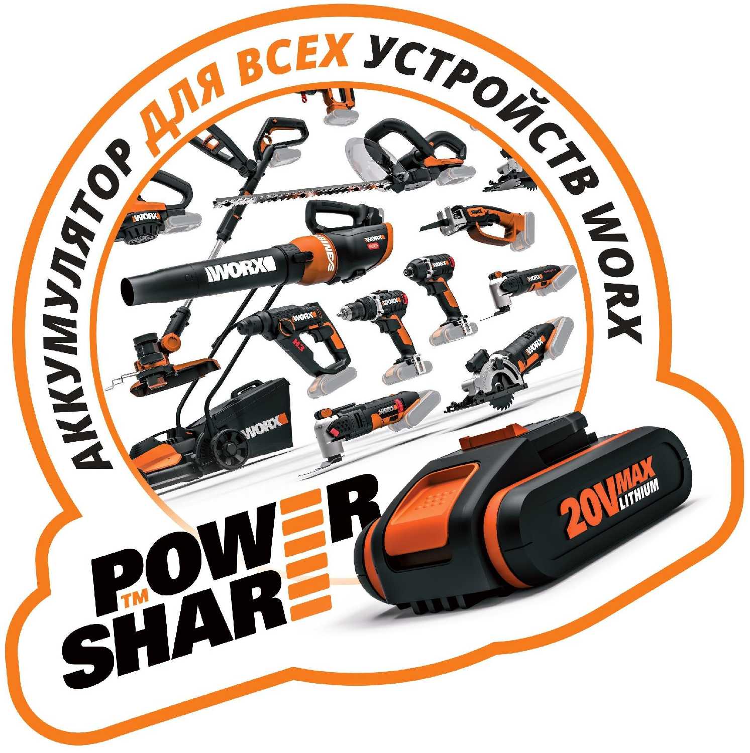 | Аккумуляторная система : | Worx PowerShare |