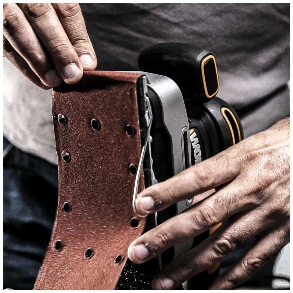 это так легко, чтобы прикрепить наждачной бумаги с помощью зажимов, которые очень легко использовать одной рукой держа шлифмашину в другом.