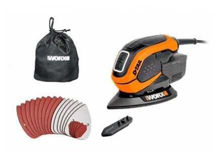 - + Отлично шлифует! Можно подключить строитеьный пылесос, для уменигения пыли