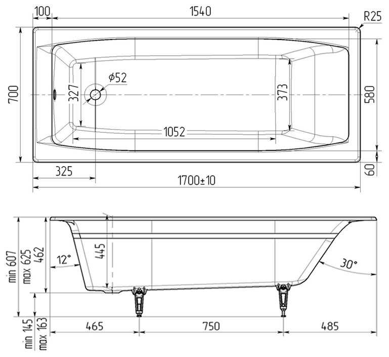 Как обозначили строители. Эта ванна подошла, взял со скидкой за 38к, очень рад, глубокая и удобная. Но имейте ввиду, что у неё есть заужение!