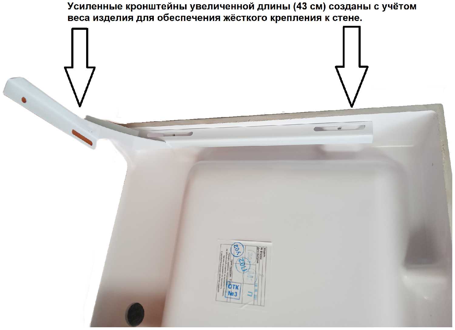 | Дополнительная информация : | в комплекте: раковина, два усиленных кронштейна длиной 430 мм, 4 закладных болта с шайбой для крепления раковины к кронштейну, сифон |