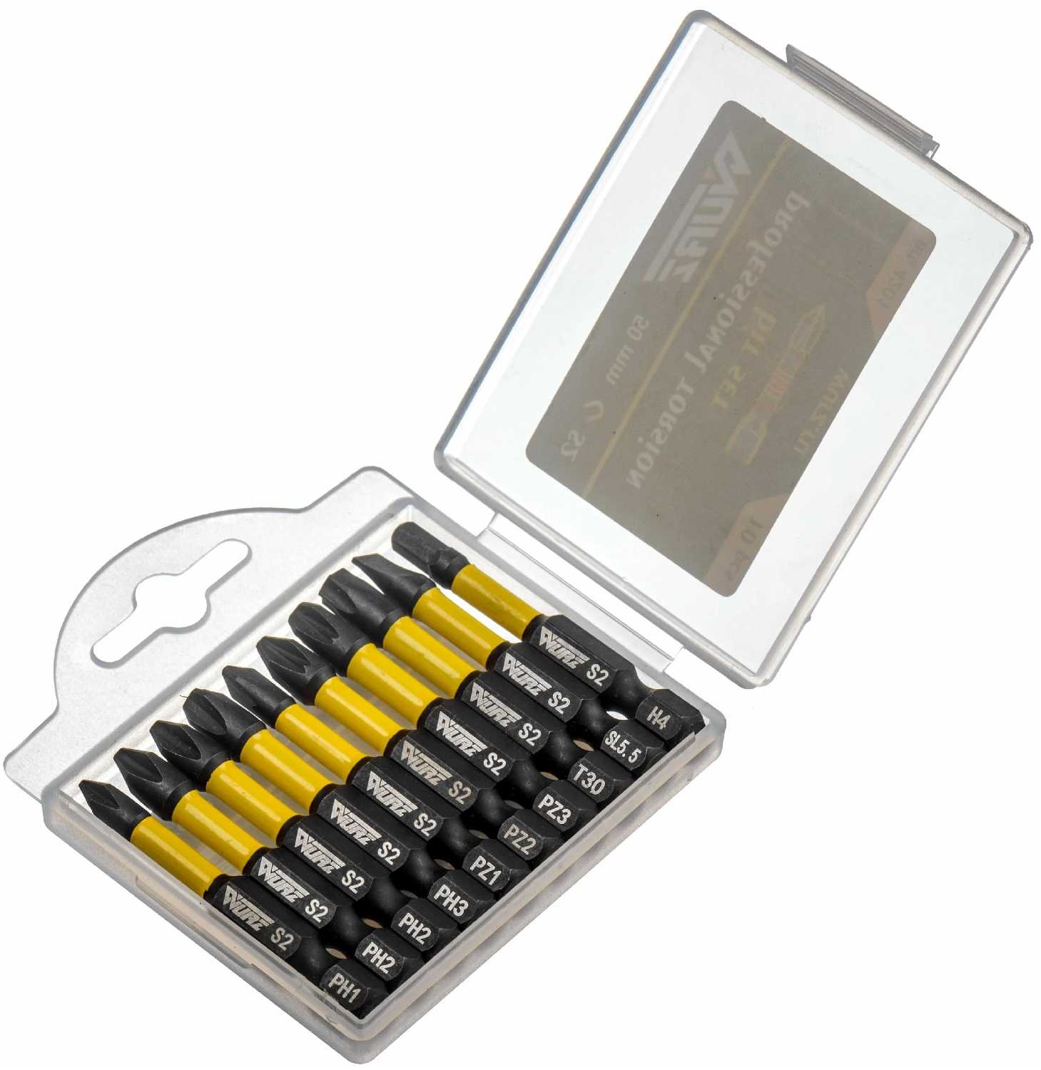 Комплект содержит наиболее востребованные размеры: PZ1, PZ2 (включая три штуки PZ2), PZ3 и PH2 (две штуки). Такой подбор покрывает базовые задачи — от сборки мебели до крепления мелких фурнитур. Пользователи особо отмечают удобство наличия всех ходовых бит в одном наборе, что исключает необходимость докупать их отдельно. -