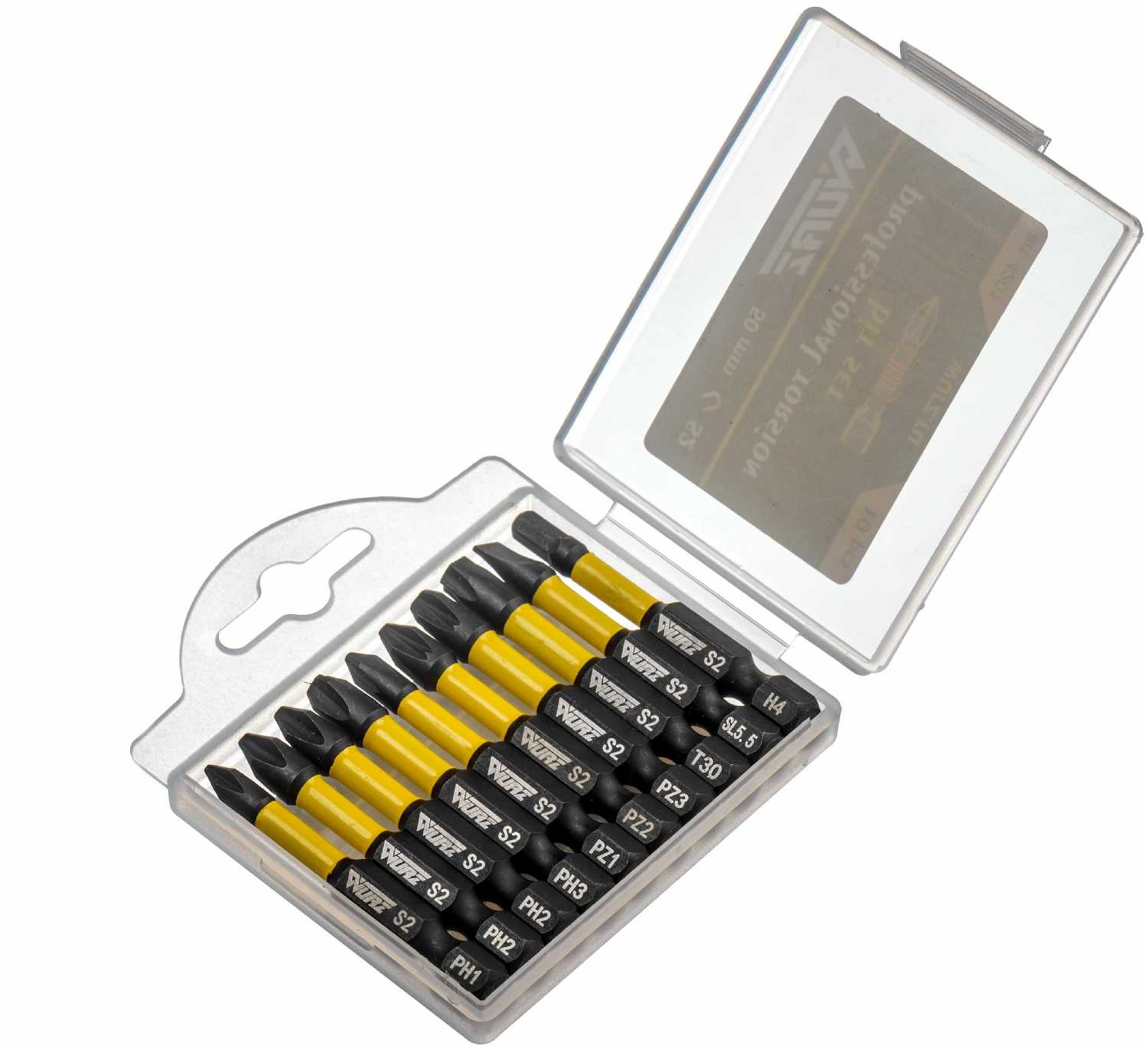 - Чёткая гравировка размера (PZ2, PH2) на каждой бите исключает путаницу при смене насадок.