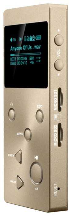 - + Хорошее сочетание цена - звук. Сцена и детальность на уровне стационарных cd плееров за 200-300$ . Прошивается на Rockbox, сохраняя возможность при включении выбирать между стоковым Linux и Rockbox - существенный плюс. Необычный дизайн довольно компактного алюминиевого корпуса, два слота для sdxc и sdhc карт. Аппаратный переключатель блокировки кнопок.