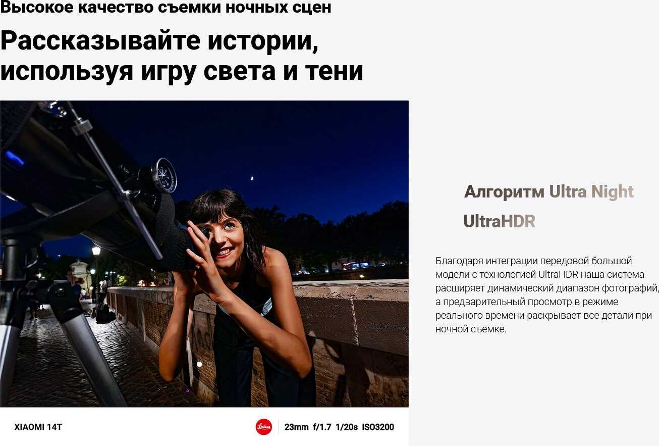 - Ночной режим эффективно снижает шумы и сохраняет детали даже при слабом освещении за счёт алгоритмов многокадровой обработки.