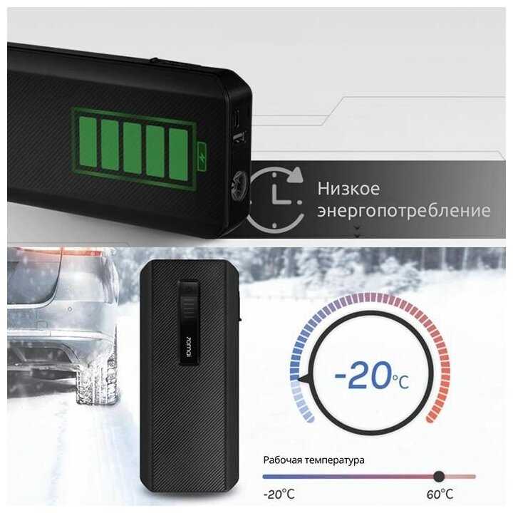 Достаточно компактный, хорошо помещается в бардачок или под сиденье, не слишком громоздкий. - - Пока не выявил, но из потенциальных проблем могут быть, если аккумулятор сильно разряжен или двигатель большой и/или дизельный — могут быть проблемы.