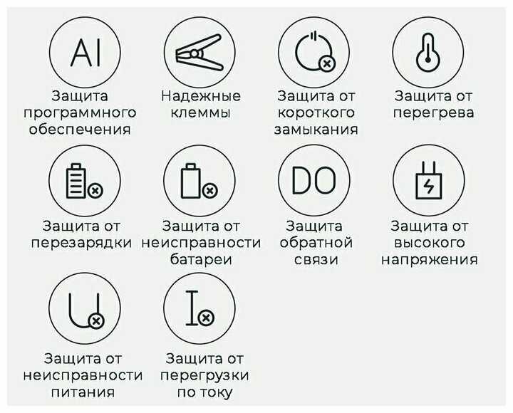 Есть защита от неправильной полярности, короткого замыкания, перегрева.