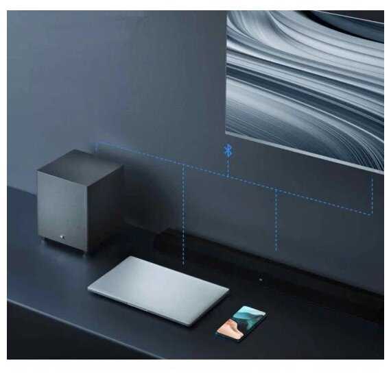 - Физическое разделение сабвуфера и основной панели (двухполосная конструкция с частотным разделением от 50 Гц) создает эффект «звукового поля» даже в помещениях 20 м².