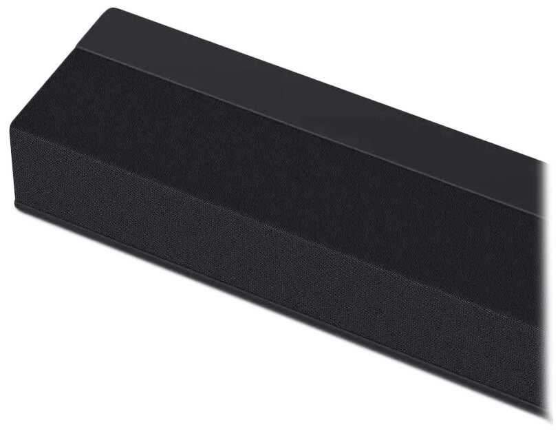 - Отсутствие резонансов корпуса саундбара благодаря демпфирующему текстильному покрытию фронтальной панели.