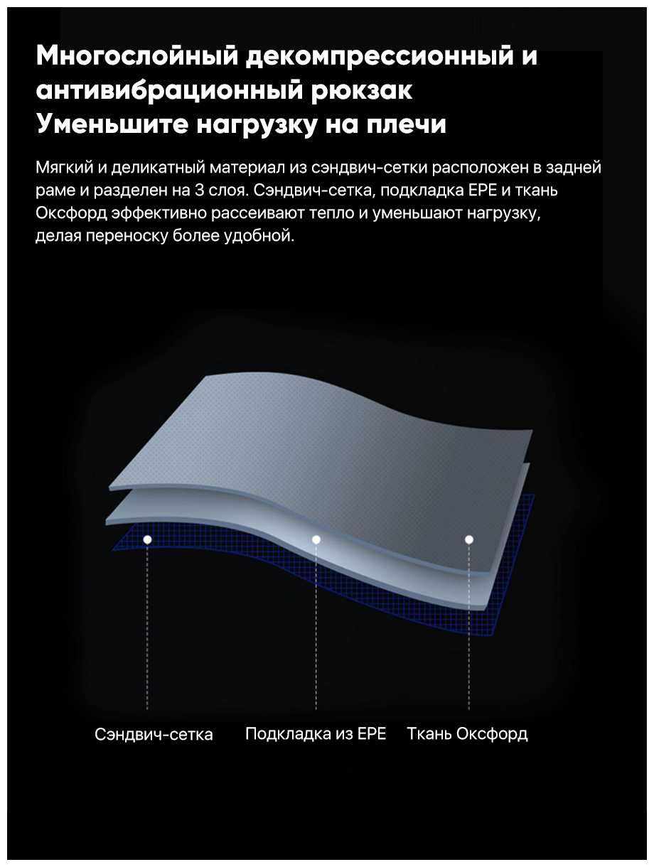 - Удобные лямки: мягкие регулируемые ремни равномерно распределяют вес, снижая нагрузку на спину.