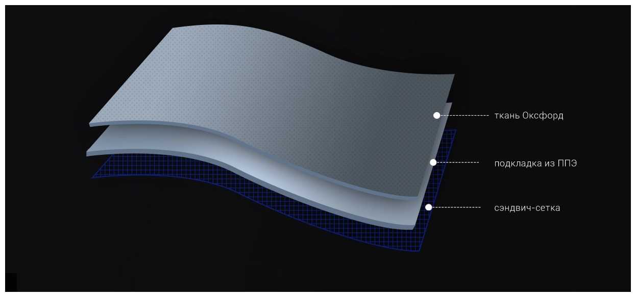 - Водонепроницаемая ткань: сохраняет содержимое сухим даже под дождем благодаря прорезиненному покрытию.