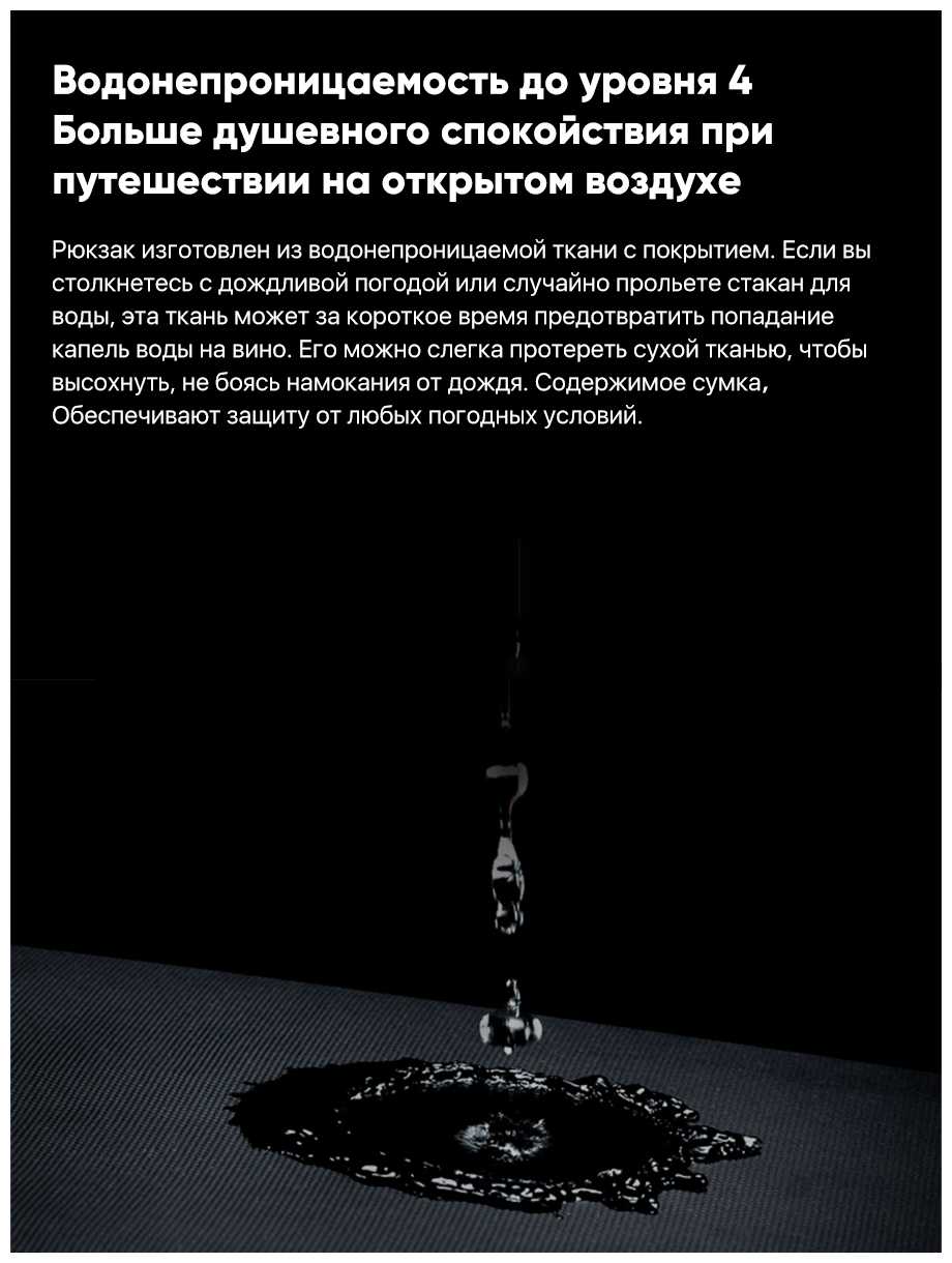 Большинство пользователей подтверждает водостойкость рюкзака: при умеренном дожде содержимое остаётся сухим благодаря прорезиненной поверхности. Материал эффективно отталкивает влагу, что особенно ценится в городских условиях. Однако единичные отзывы указывают на промокание при интенсивном ливне, поэтому для экстремальных погодных условий защита может быть недостаточной. -