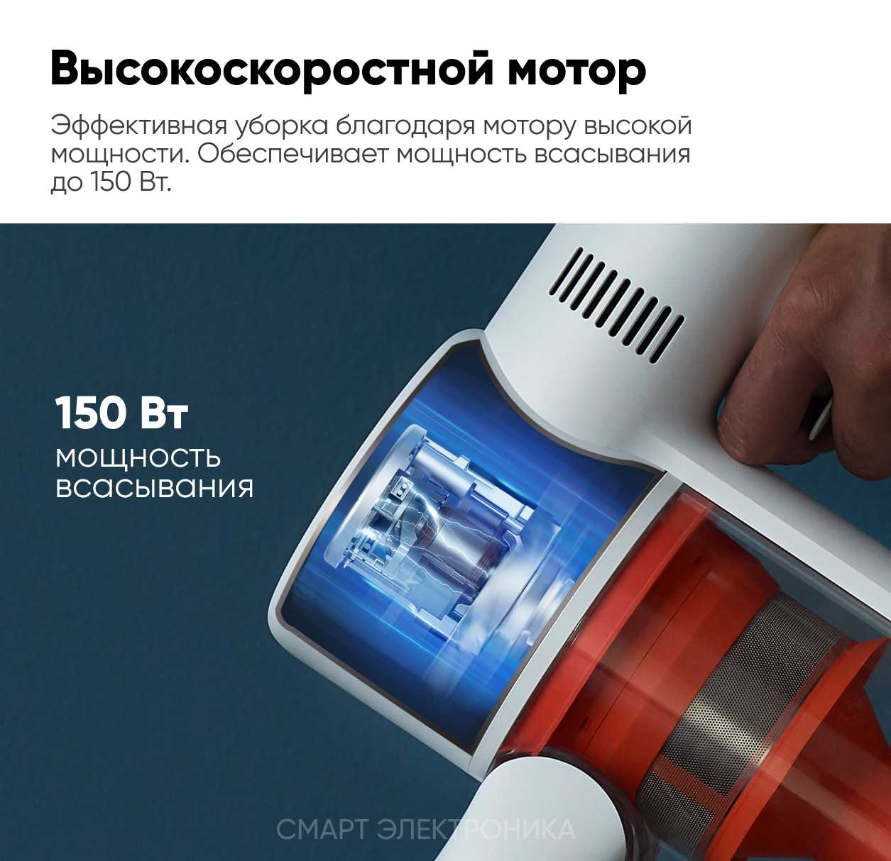 - Аккумулятор 2500 мА·ч обеспечивает до 50 минут работы в Eco-режиме (хватает на 70 м²), но на Turbo время сокращается до 15 минут.