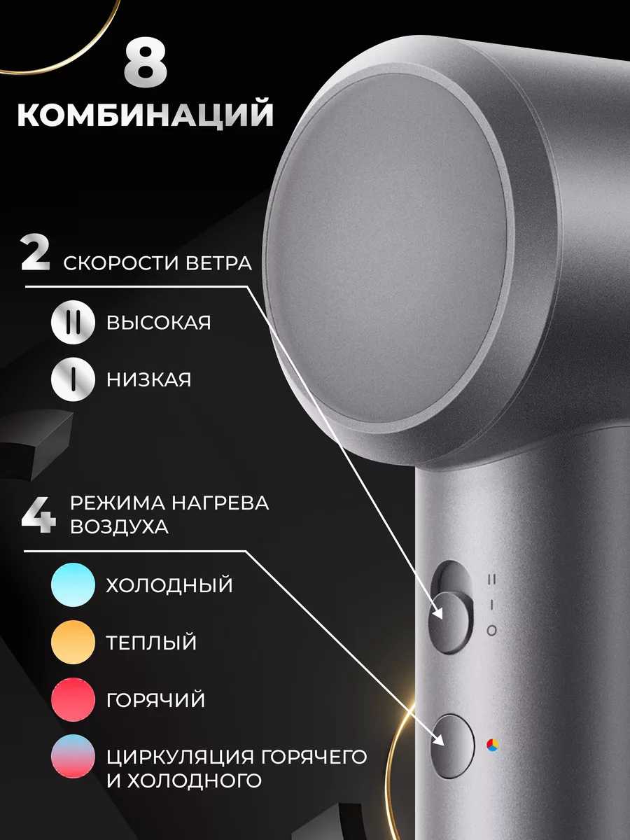 - + Фен выглядит современно и стильно, приятен на ощупь. Очень интересно выполнена задняя подсветка. 4 режима сушки волос и два режима регулировки мощности. Сушит быстро и при этом достаточно бесшумный. Коробка выглядит премиально. Рекомендую к покупке!