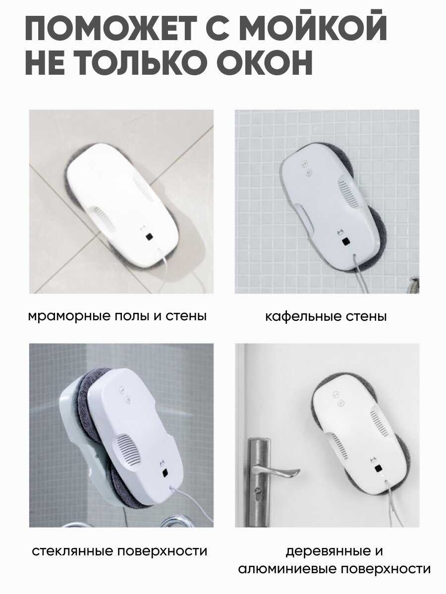 Иногда, правда, надо посылать дважды промывать сильные загрязнения, но в целом - ок. - - Гудит шумно, не получится помыть окна со спящим ребёнком. Не промывает края. На поверхностях без границ (шкафы, стенки) не понимает где край и может слететь.