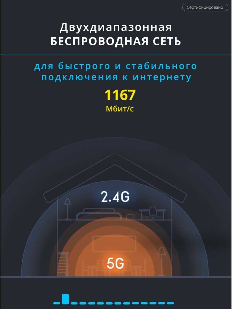 - Стабильная работа в двух диапазонах Wi-Fi (2.4 ГГц и 5 ГГц) с качественным покрытием: