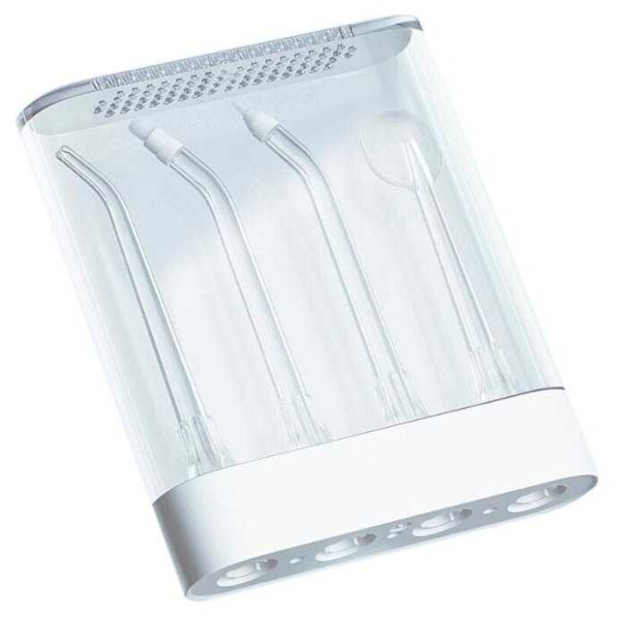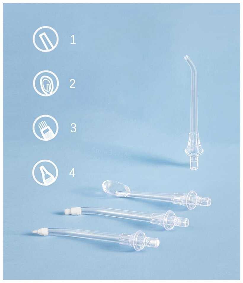 - 4 насадки в вентилируемом кейсе: стандартная, ортодонтическая, ложечка для языка, пародонтологическая.