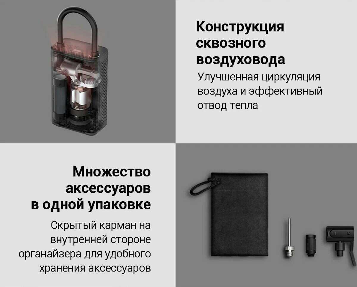 - + очень хорошо собран, все нужные насадки есть, режимы для накачки. и самое крутое - встроенный аккумулятор! не нужно бегать с крокодилами до капота.