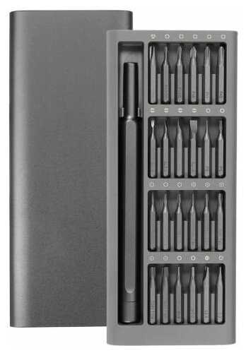 - 24 биты покрывают основные типы (Phillips, Torx, Slotted, Hex), подходя для смартфонов, ноутбуков, ПК, приставок и бытовой техники, включая редкие размеры как Y0.6 или T15H.